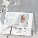 Añade tu propia nota personal de agradecimiento, gratitud y aprecio por las condolencias luego de la muerte y pérdida de un ser querido dentro de la Tarjeta de Nota de agradecimiento del Funeral de la bonito White Water Lily. Esta elegante nota de agradecimiento personalizado florida muestra una fotografía floral de una flor de lirio de agua blanca, con luces azul claro en el tallo y fondo blanco, pintada digitalmente. Siéntase libre de cambiar el mensaje interno y personalizar con su nombre familiar y la fotografía del fallecido.
