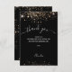 Un fondo negro, decorado con brillo falso dorado oscuro que brilla. Gran letra a mano con florituras y el texto: Gracias. Personaliza y añade tu nota de agradecimiento y nombre.