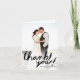Personaliza esta divertida tarjeta de agradecimiento con foto elegante, diseñada con texto negro en negrita y letra manuscrita ¡Gracias!, sobre una fotografía vertical. Reemplaza la imagen del modelo con la tuya, para obtener mejores resultados, por favor usa una imagen de alta resolución. Este diseño tiene un texto dentro que dice: "Nuestra boda no hubiera sido lo mismo sin el apoyo de nuestra familia y amigos. ¡Gracias por compartir nuestro día!". Puedes cambiar las palabras por las tuyas o eliminar el texto para dejarlo en blanco. *Créditos de la foto del modelo © de Sean McGrath