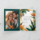 Presentación de la tarjeta Aves del Paraíso Boda Horizontal Doble Gracias, expresando su más sincero agradecimiento contra el vibrante telón de fondo tropical de pájaros de flores del paraíso, hojas verdes y delicadas líneas rectas. La parte delantera de la tarjeta doblada incluye una leyenda "GRACIAS" sencilla pero cálida. A medida que se despliega la tarjeta, el panel izquierdo del interior muestra una foto de parejas muy apreciadas, añadiendo un toque personal. El panel derecho que hay en el interior proporciona espacio para el texto personalizado, lo que permite a la pareja transmitir un mensaje especial, compartir sentimientos o incluir detalles. También hay sitio para los nombres de las parejas y la fecha de boda. El cautivador fondo continúa a la perfección en el panel derecho, asegurando una presentación coherente y visualmente atractiva. Este diseño cuidadoso asegura que la tarjeta Aves de Paraíso Bliss Boda Horizontal Doble Gracias sirve no sólo como un gesto de gratitud sino también como un querido keepsake, haciendo eco del espíritu vibrante de la colección.