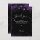 Un fondo negro, decorado con purpurina falsa morada y destellos. Letra grande a mano con florituras y el texto: Gracias. Personaliza y añade tu nota de agradecimiento y nombre.