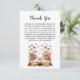 Esta hermosa tarjeta de agradecimiento con tema de libro y anillo es una forma perfecta de expresar gratitud sincera con un toque de encanto literario. Con delicadas flores silvestres en acuarela combinadas con elementos delicados relacionados con los libros, este diseño es ideal para baby showers, despedidas de soltera o fiestas con tema de libros. El estilo floral elegante añade un toque atemporal y suave a tu mensaje. Impresa en papel de alta calidad, es adecuada tanto para eventos formales como informales. Ya sea que estés agradeciendo a los invitados por su presencia, regalos o palabras reflexivas, esta tarjeta hace que tu agradecimiento sea verdaderamente memorable. Un hermoso recuerdo que combina la belleza y el sentimiento.