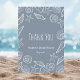 La tarjeta de agradecimiento costera Seashells and Star Fish es una forma atemporal y elegante de expresar su gratitud después de una despedida de soltera, fiesta de soltera o celebración de boda en la costa. Diseñada con una estética costera tranquilizadora, esta tarjeta plana presenta delicadas ilustraciones de conchas marinas y estrellas de mar que rodean un mensaje de "gracias" limpio y centrado. Personalice la tarjeta con el nombre de la novia, el título del evento o la fecha para crear un recuerdo sincero para sus invitados. Con su encantador ambiente costero, esta tarjeta de agradecimiento combina perfectamente con temas de playa y costa. Todo el texto y los colores son totalmente editables, lo que le permite coordinar fácilmente con la decoración y la paleta de colores de su evento.