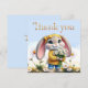 Tarjeta De Agradecimiento Conejo femenino lazo de lunares Gracias
