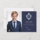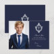 Tarjeta De Agradecimiento Confirmación Azul Marino Falsa Cresta Plateada Niñ