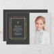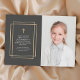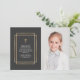 Agrega fotos y tu mensaje de agradecimiento a tu personalizado. El diseño se compone de un marco geométrico dorado y una cruz de oro falsa.