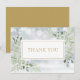 Con hojas delicadas de acuarela sobre un fondo de escarcha invernal que enmarca su mensaje de agradecimiento en tipografía dorada elegante. Puede personalizar con su propio mensaje de agradecimiento en el reverso o, si lo prefiere, agregar su propio mensaje escrito a mano, elimine el texto. ¡Una forma perfecta de decir gracias! Diseñado por Thisisnotme©