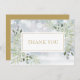 Con delicadas hojas de acuarela en un fondo de escarcha de invierno que enmarca su mensaje de agradecimiento en tipografía dorada elegante. Puede personalizar con su propio mensaje de agradecimiento en el reverso o, si lo prefiere, agregar su propio mensaje manuscrito, elimine el texto. ¡Una forma perfecta de decir gracias! Diseñado por Thisisnotme