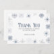 Una carta de agradecimiento de invierno con copos de nieve. Una manera perfecta de agradecer a sus invitados por venir a su evento.