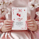 Esta tarjeta de agradecimiento a los bebés inspirada en la coqueta incluye dos cerezas de acuarela pintadas a mano atadas con un suave arco rosado, enmarcadas por estallidos rojos retro y florecimiento de lazos. Una manera elegante de enviar gratitud a la familia y amigos, esta tarjeta combina perfectamente con la invitación a la ducha de cerezos a juego. El diseño combina un fondo blanco limpio con una tipografía roja elegante, lo que le da un aspecto lúdico y atemporal. Ideal para las duchas con temática de cerezo, de niñera o de coqueta. Toda la redacción puede ser editada, lo que facilita la personalización de su mensaje de agradecimiento.