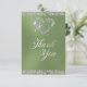 Tarjeta De Agradecimiento Corazón Romántico y Brillo sobre Salvia