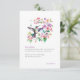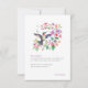 Agradezca a los invitados de su fiesta de cumpleaños con esta tarjeta de agradecimiento que presenta un colibrí acuarela con una corona floral sobre un fondo blanco.
