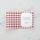 Tarjetas de agradecimiento rústicas inspiradas en el sur de belleza impresionante con una ilustración de un frasco de mason con una cuerda atada alrededor del cuello, margaritas blancas y moradas en la base del frasco y una parte superior de mesa de gingham rojo, sobre un fondo marrón vintage. El interior está impreso con su propio mensaje personalizado de agradecimiento. También puede eliminar fácilmente el texto de la plantilla interior para dejar estas tarjetas en blanco para escribir a mano sus sentimientos personales de gratitud. Estas tarjetas son elegantes y bonitas, perfectas para bodas campestres, aniversarios, despedidas de soltera y más.