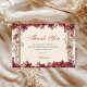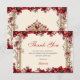 Tarjeta De Agradecimiento Cream and Red Golden Tiara Floral Quinceañera