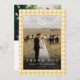 Elegante tarjeta de "Gracias" con cresta monograma y gingham rústico amarillo con 2 fotos.