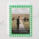 Tarjeta de agradecimiento con foto y monograma con cresta de gingham verde rústico elegante.