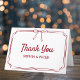 Anuncie su día especial con nuestras tarjetas de agradecimiento a nuestro Boda de la Cinta Roja Crimson. Este sofisticado diseño, con una tipografía escrita a mano clásica y un encantador borde de lazo y arco, es perfecto para parejas que buscan una estética atemporal y refinada.