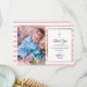 Tarjeta clásica de agradecimiento para bautizo o presentación con franja rosa que incluye una cruz dorada con un borde de falso foil dorado elegante que enmarca tus detalles en tipografía moderna. Personaliza con tu foto y mensaje especial de agradecimiento por el bautizo o presentación en tipografía chic en este diseño moderno y elegante. Diseñado por Thisisnotme