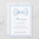 Elegante preppy bebé ducha de agradecimiento tarjeta mostrando la linda corbata azul claro rodeada de un patrón de gingham. Perfecto para las celebraciones de estilo clásico boho.