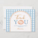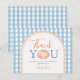 Tarjeta de agradecimiento Cumpleaños 1 año Boho Calabaza Gingham Azul