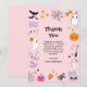 Tarjeta de agradecimiento de cumpleaños 1 de Halloween para niña con fantasma lindo rosa espeluznante.