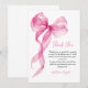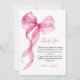 Tarjeta de agradecimiento para niñas de primer cumpleaños con lazo de cinta rosa a la acuarela. Artículos coincidentes disponibles.