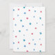 Tarjeta de agradecimiento de cumpleaños para niño con tema de bolos adorable con ilustración de acuarela de una bola de bolos golpeando algunos bolos con estrellas azules y rojas alrededor. El texto dice "gracias por rodar conmigo".