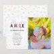 Tarjeta de agradecimiento de cumpleaños adorable después de una fiesta de cumpleaños con tema de donas con ilustración de dona con sprinkles. El texto en la parte superior dice "Gracias un montón" con una dona dentro del texto. Personalice esta tarjeta de invitación con el nombre de su hijo en la parte inferior y una foto.