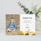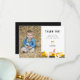Tema de camiones de construcción lindos, foto plana de tarjeta de agradecimiento para fiesta de cumpleaños.