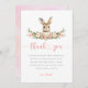 Tarjeta de agradecimiento de cumpleaños de niña conejo floral rosa de primavera.