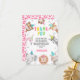 Tarjeta de agradecimiento de cumpleaños de animales de fiesta llamando Safari rosa moderno Divertida y colorida, tarjeta de agradecimiento de cumpleaños con tema de animales de fiesta que incluye ocho animales de la jungla, sombreros de fiesta coloridos, puntos y estrellas coloridos y título multicolor.