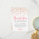 Tarjeta de agradecimiento de cumpleaños de brillo rosa dorado de confeti