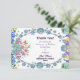 Transmita un agradecimiento especial con una tarjeta de agradecimiento personalizada. El diseño presenta flores azules de hortensias, lilas y flores y capullos de lino azul. Si te gusta esta obra de arte, puedes visitar mi tienda floral_colors para obtener artículos coincidentes o similares.