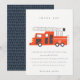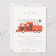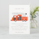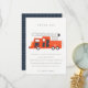 Una divertida colección de cumpleaños con tema de CAMIÓN DE BOMBEROS para niños.- Es una ilustración minimalista y elegante de un camión de bomberos rojo con sombrero de bombero, perfecta para la fiesta de cumpleaños de tu pequeño. Es muy fácil de personalizar con tus datos personales.