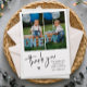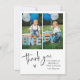 Sencilla y minimalista tarjeta de agradecimiento de cumpleaños para niños. Perfecta para agradecer a los invitados por venir al cumpleaños de tu hijo. El diseño incluye dos fotos, mensaje y tipografía de ''gracias'' en letras de moda.
