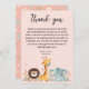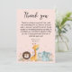 Tarjeta De Agradecimiento Cumpleaños de los Animales Salvajes Girly Fiesta