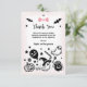 Únete a nosotros para una celebración divertidamente aterradora llena de magia de Halloween :) Nuestra tarjeta de agradecimiento presenta un fantasma lindo espeluznante con globos de sombrero de bruja, murciélagos, calabazas, dulces y estrellas para crear una atmósfera verdaderamente encantadora.