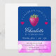 Tarjeta De Agradecimiento Cumpleaños de niña con fresas rosa y azul oscuro