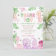 Tarjeta de agradecimiento de cumpleaños de niña de dinosaurio acuarela