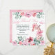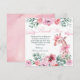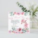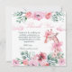 Un dulce diseño de acuarela que presenta una encantadora jirafa rodeada de flores, follaje verde y nubes suaves, acentuado con delicadas cintas rosadas y un lazo coqueto juguetón. La paleta pastel suave crea una atmósfera de jardín caprichosa, perfecta para celebraciones alegres de niños y temas de fiesta inspirados en la naturaleza.