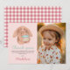 Esta tarjeta de agradecimiento de cumpleaños para niñas con conejo de peluche rosa y lindo tiene un juguete de conejo suave en la parte delantera, espacio para agregar una foto y cuadros rosados en la parte posterior. Perfecto para un tema de cumpleaños de conejo, bosque o niñas adorables.