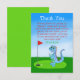 Expresa tu gratitud con nuestra adorable tarjeta de agradecimiento con tema de dinosaurios. Con un dino adorable agarrando un putter en un campo de golf, es perfecto para jóvenes entusiastas del golf. ¡Difunde alegría y aprecio con esta encantadora invitación!