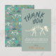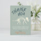 Este diseño de tarjeta de agradecimiento de cumpleaños para niños presenta una ilustración de fósil de excavación de dinosaurio, con un patrón jurásico coincidente en la parte posterior. También hay espacio para que agregues tu propio mensaje de agradecimiento.