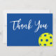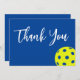 Tarjeta De Agradecimiento Cumpleaños de Pickleball con tema de neón azul est