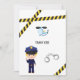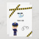 Tarjeta de agradecimiento de fiesta temática de policía con un diseño de texto simple en blanco y negro adecuada para niños y niñas personalizable a los detalles de su evento.