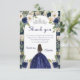 Tarjeta de agradecimiento de cumpleaños de Quinceañera Princesa Floral Azul