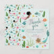 Esta tarjeta de agradecimiento de cumpleaños de niñas lindas presenta una ilustración de una sirena bajo el mar, con peces, algas, burbujas y un cangrejo. La tarjeta tiene un patrón mágico de sirena coincidente en la parte posterior y proporciona áreas para que agregues un mensaje de agradecimiento. Perfecto para cualquier entusiasta de sirenas caprichosas.
