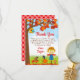 Esta tarjeta de agradecimiento linda y divertida presenta a un espantapájaros con una camisa de cuadros rojos y pantalones de mezclilla azules y un sombrero. En el fondo hay un árbol con hojas de otoño, una casa para pájaros, una ardilla que escarba en busca de nueces, un adorable cuervo sobre una calabaza y un hongo de sombrero. El texto combina letra manuscrita y fuentes sans serif para un look elegante y moderno. Esto es perfecto para un cumpleaños de otoño.