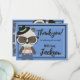 ¡Hip, hip, hurra! Celebra el cumpleaños de un pequeño señor con este adorable y elegante oso panda. Cuenta con un fondo gris azul negro, colores negro y gris en todo el diseño. Ilustraciones de DorkyPrints.