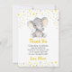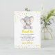 Tarjeta de agradecimiento personalizada de elefante gris y amarillo para la fiesta de cumpleaños de un bebé. Completamente personalizable con el texto que desees. Hecha para combinar con nuestra colección de Elefante Amarillo y Gris.